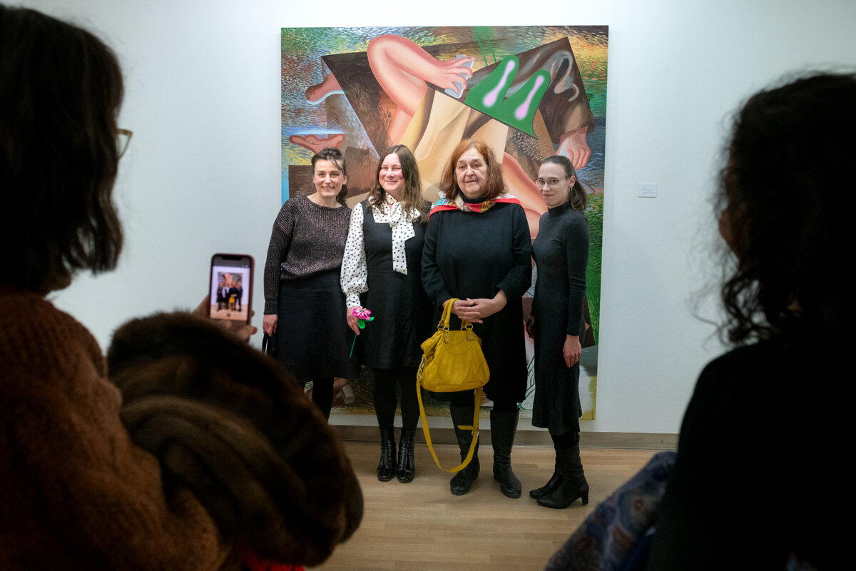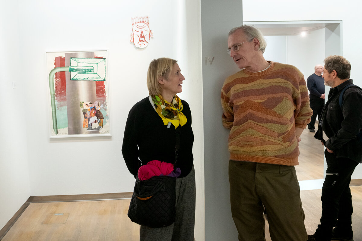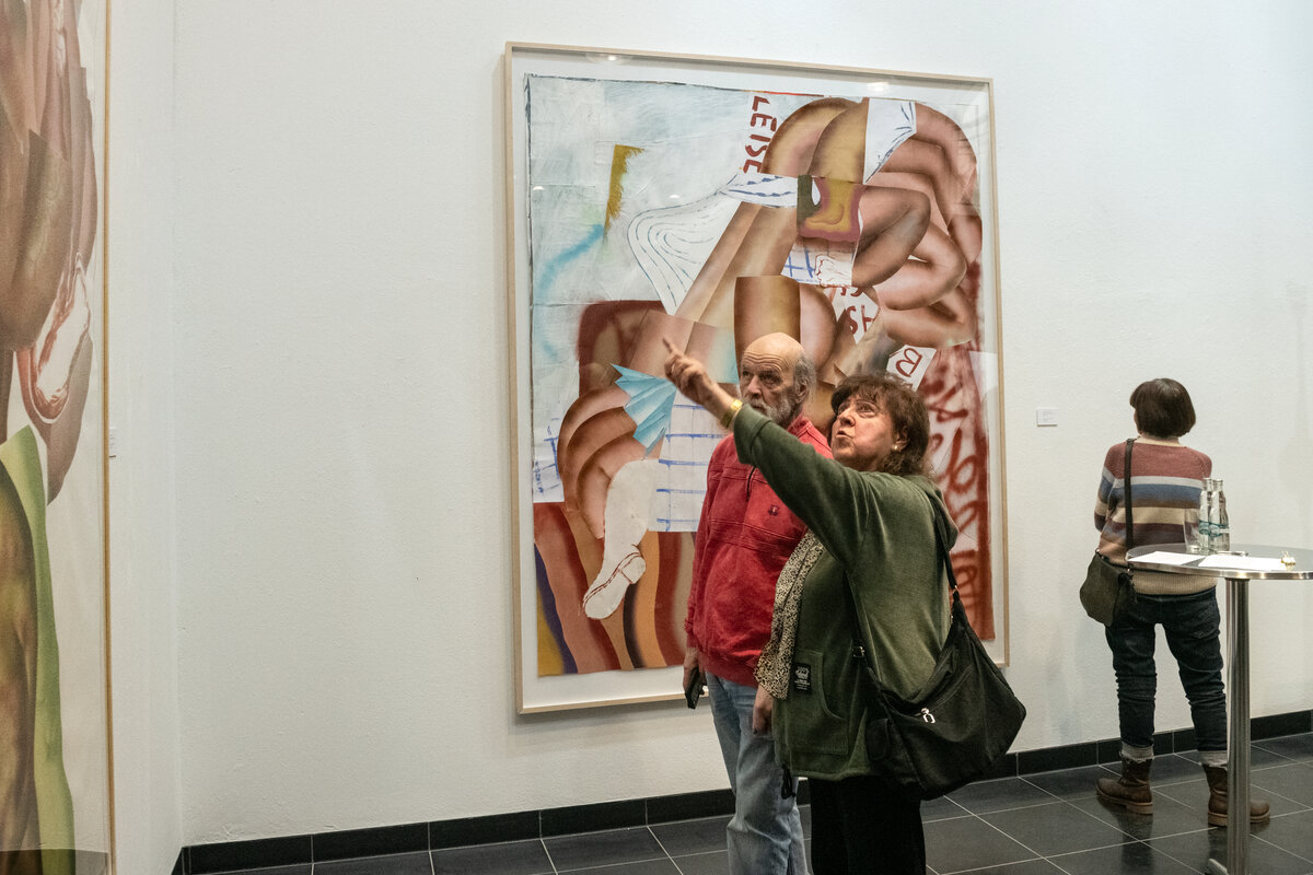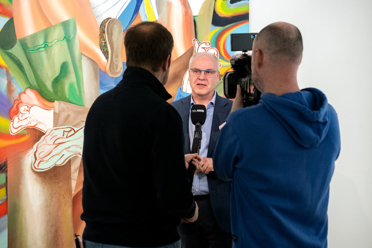Mit über 100 Gästen startete die Ausstellung „Kristina Schuldt. Tatjana“ am 4. Februar um 17:00 Uhr. Insgesamt 13 großformatigen Gemälde und Collagen stellt die in Neubrandenburg aufgewachsene und heute in Leipzig lebende und arbeitende Künstlerin bis zum 3. Mai 2026 in der Kunstsammlung aus. Die Bilder sind Leihgaben privater Sammlerinnen und Sammler sowie der die Künstlerin vertretenden Galerie EIGEN + ART Leipzig/Berlin, die diese einzigartige Ausstellung ermöglichten.